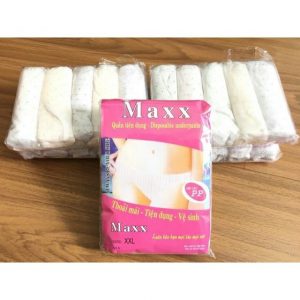 Disposable underwear is conveniently designed:– Maxx label– 2 thick bottom layers, soft elastic waist– For mothers in the first weeks after when giving birth.– For women to use when traveling or working away– Use during “red light” days– Use when traveling extremely convenient– Made in VietnamNote: Single use product, not washable#mevabe #quanaovaphukiensosinh #dochome #bangvesinhchome #quantathapper #quantatbaove #quanthun4chieu #quanngdayyngang #quanshortcotuichobe #quanthethao #quanngantrang #quanduisosinh #quandaimacta #quandaiboong #quansosinhmauinhinh #hotga #happer #babymommy